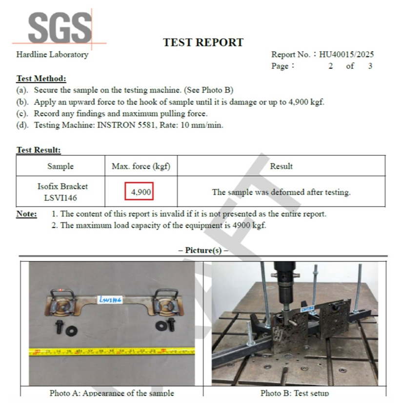 依照原廠樣品去製作 經SGS測試 到鐵件變形拉力為4900KGF(原廠件測試為2167KGF)
